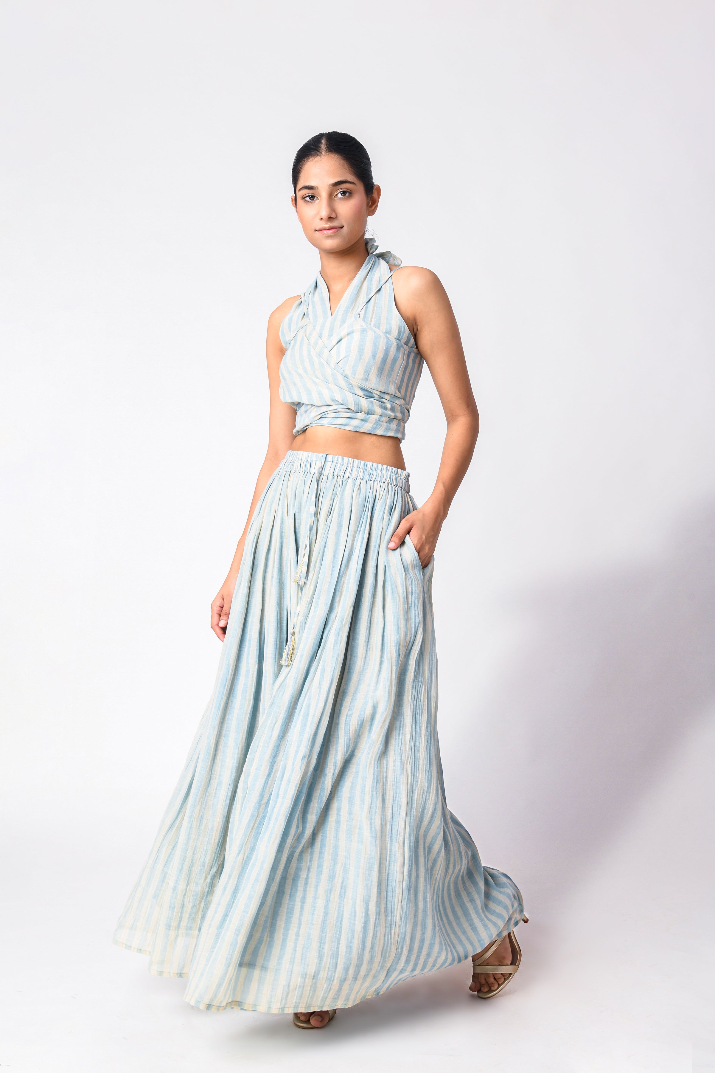Our collection offers a wide range of skirt sets that stand out for their unique pairings and high-fashion aesthetics. From smocked top-straight skirts and corset-ruched skirts to kaftan shirt-reversible skirts, vest-wraparound skirts, and blazer-skirt combinations, each set is thoughtfully designed to offer multiple styling options. Tops range from crop tops, boxy tops, spaghetti straps, and blazers to oversized shirts and churidar sleeve crop tops, allowing you to mix and match for endless possibilities. The varied designs make our skirt sets an ideal choice for a capsule wardrobe, giving you pieces that are versatile enough to last for years.
