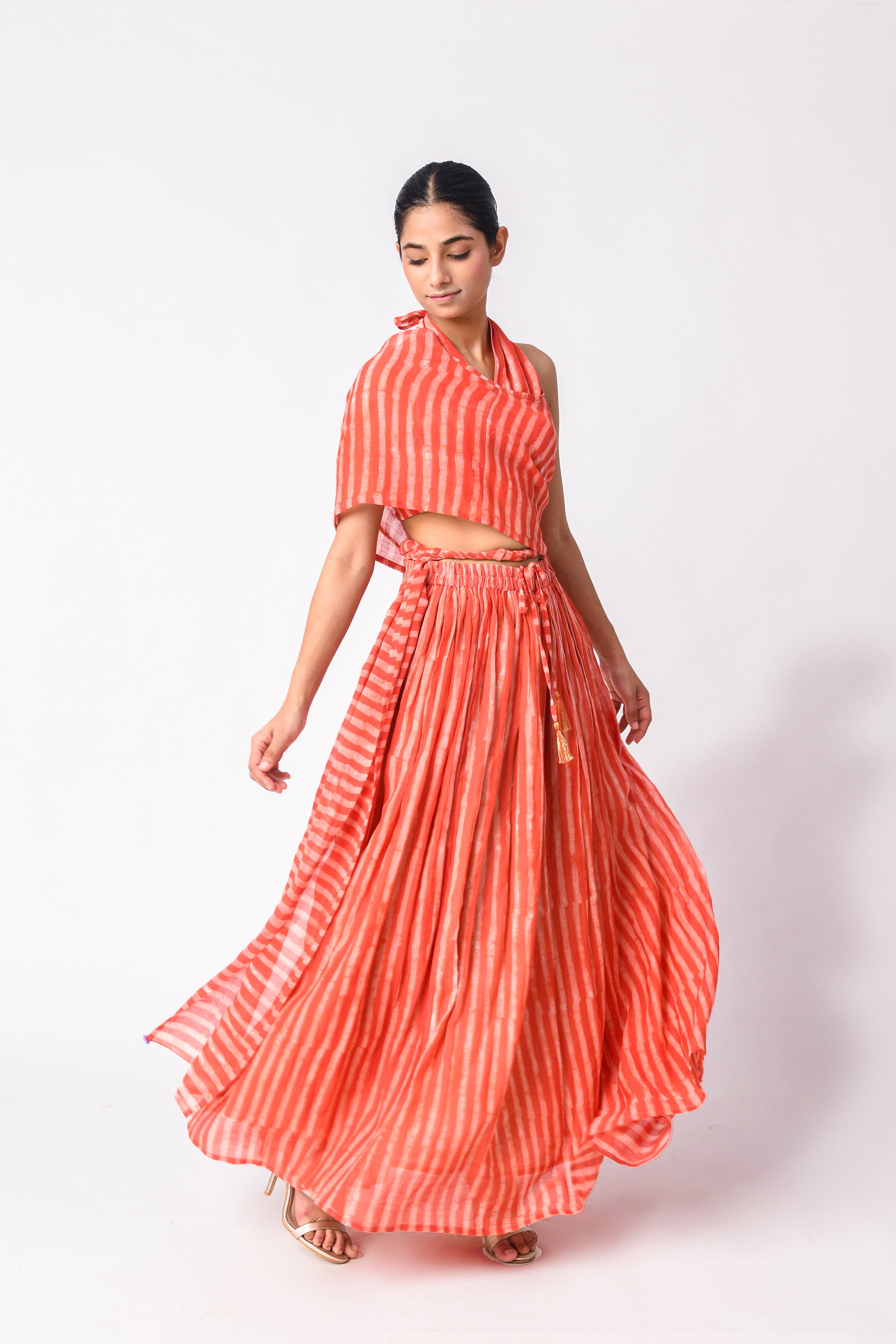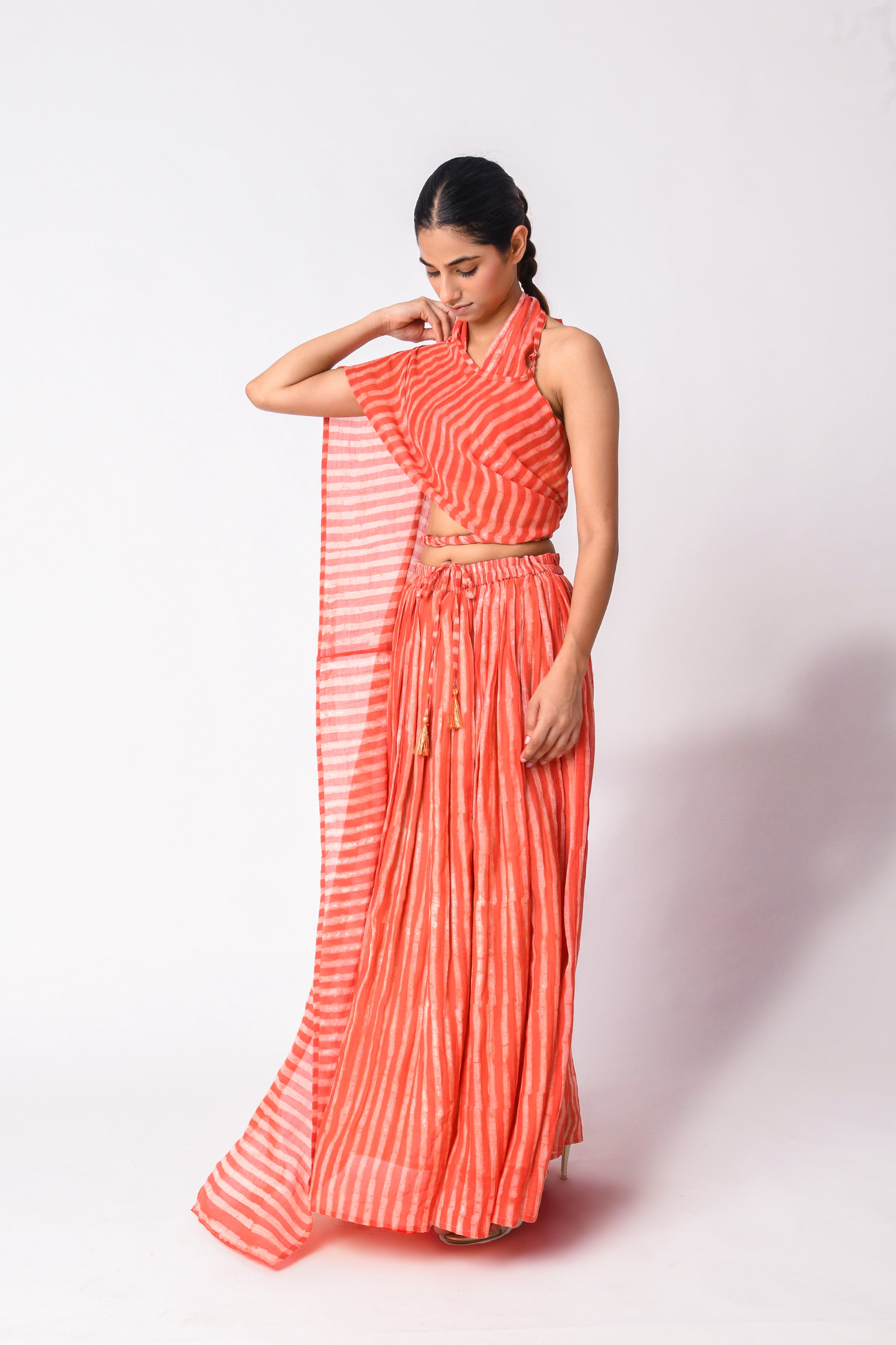 At Ciceroni, we focus on textiles as much as design. Our skirt sets feature a rich array of fabrics, including eco-friendly choices like upcycled cotton slub, bamboo viscose, and biodegradable Lyocell, as well as luxurious handwoven options like Chanderi, Habutai, Goan Kunbi and Mashru Silk. With materials that range from raw silk satin and Tussar Satin to Cupro satin, European flax, organza, and handloom cotton and Jamdani, every skirt set is a fusion of elegance and sustainability. The addition of hand embroidery, digital prints, and block printing brings beautiful details to each outfit, ensuring each piece feels truly special.