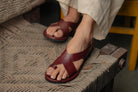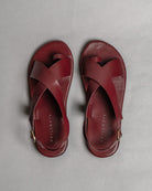 Crossover Strap Leather Women's Sandals - Wine