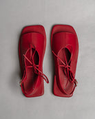 Handcrafted with soft, textured leather, these sandals feature a distinctive tie-up detail that can be styled as you prefer, tied at the front like a shoelace or wrapped elegantly around the ankle. The open square-toe design and cushioned footbed offer all-day comfort, while the slip-resistant rubber outsole ensures a confident stride. Lightweight and versatile with a refined, contemporary silhouette.