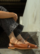 Handcrafted with soft, textured leather, these sandals feature a distinctive tie-up detail that can be styled as you prefer, tied at the front like a shoelace or wrapped elegantly around the ankle. The open square-toe design and cushioned footbed offer all-day comfort, while the slip-resistant rubber outsole ensures a confident stride. Lightweight and versatile with a refined, contemporary silhouette.