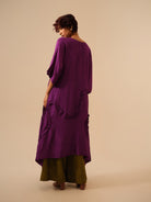 This tunic is crafted in lightweight silk with a kaftan-inspired cut that flatters all body types. The fluid silhouette is adorned with hand-sewn ruffles in a matching tone, each delicately stitched by our artisans. Effortless and versatile, it captures the balance between ease, craftsmanship, and timeless form.
