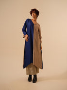 Indulge in luxury with our Onyx Tunic, crafted from the finest Mysore Silk. Its bold color blocking and effortless silhouette, with short side slits, create a versatile piece that can be worn as both a tunic and a dress. Elevate your style with ease and sophistication in this exclusive garment.