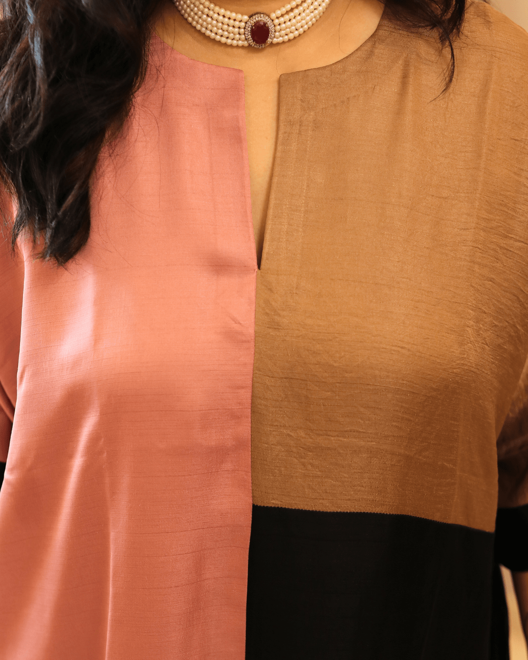 • Tunic has keyhole V neck with 3/4th sleeves and side pockets