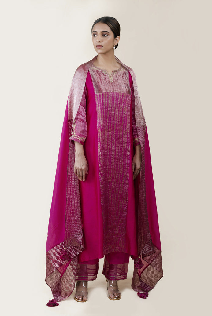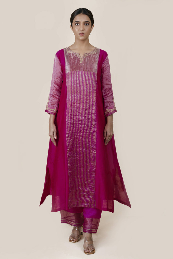 Evoke the nostalgia of your childhood celebration of Rakshabandhan, but in the Millennial and Gen-Z way with our vintage-invoking collection of modern fits. If you want to go the traditional way, opt for our newly launched collection of Sarees and Blouses handcrafted in luxurious pure Silk, Chanderi Silk, Tissue. Linen and Chanderi with delicate details in zari. These sarees are perfect for light festive wear and can take you from work to evening effortlessly. If you are someone who likes fusion and more contemporary fits, our collection of Kurta Sets and Co-ord Sets in fresh colours and textiles are the must-haves. They can be styled in innumerable ways with just a switch of accessories. Graceful details in zari, embroidery and Jamdani are the highlight for this season. Besides festivities like Rakhi, wear these fits to work, casual outings, evening soirees, light festive occasions and even to a wedding with the right accessories from our Jewellery Trunk. Simple cuts and hemlines give vintage and Boho vibes to this collection. We have men’s kurta too in classic vintage styles that reminds of the timelessness of yore.