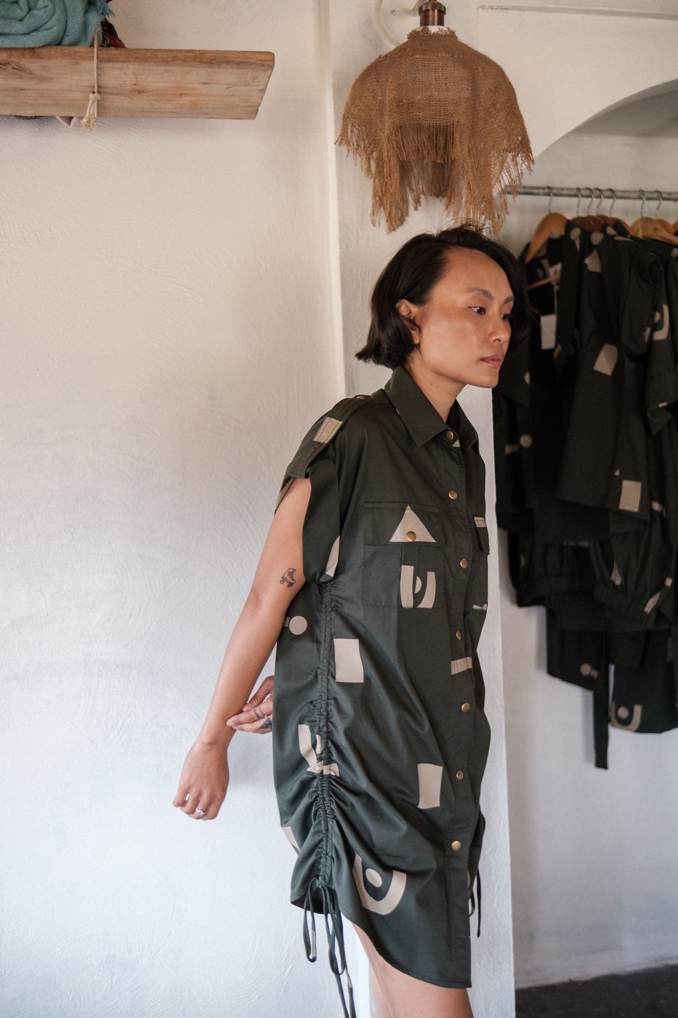Introducing our Sunrise Gather Dress - a multifunctional piece that exudes sophistication and style. With side gathers and patch pockets, this dress offers the perfect blend of elegance and comfort. A must-have for any fashion-forward individual.