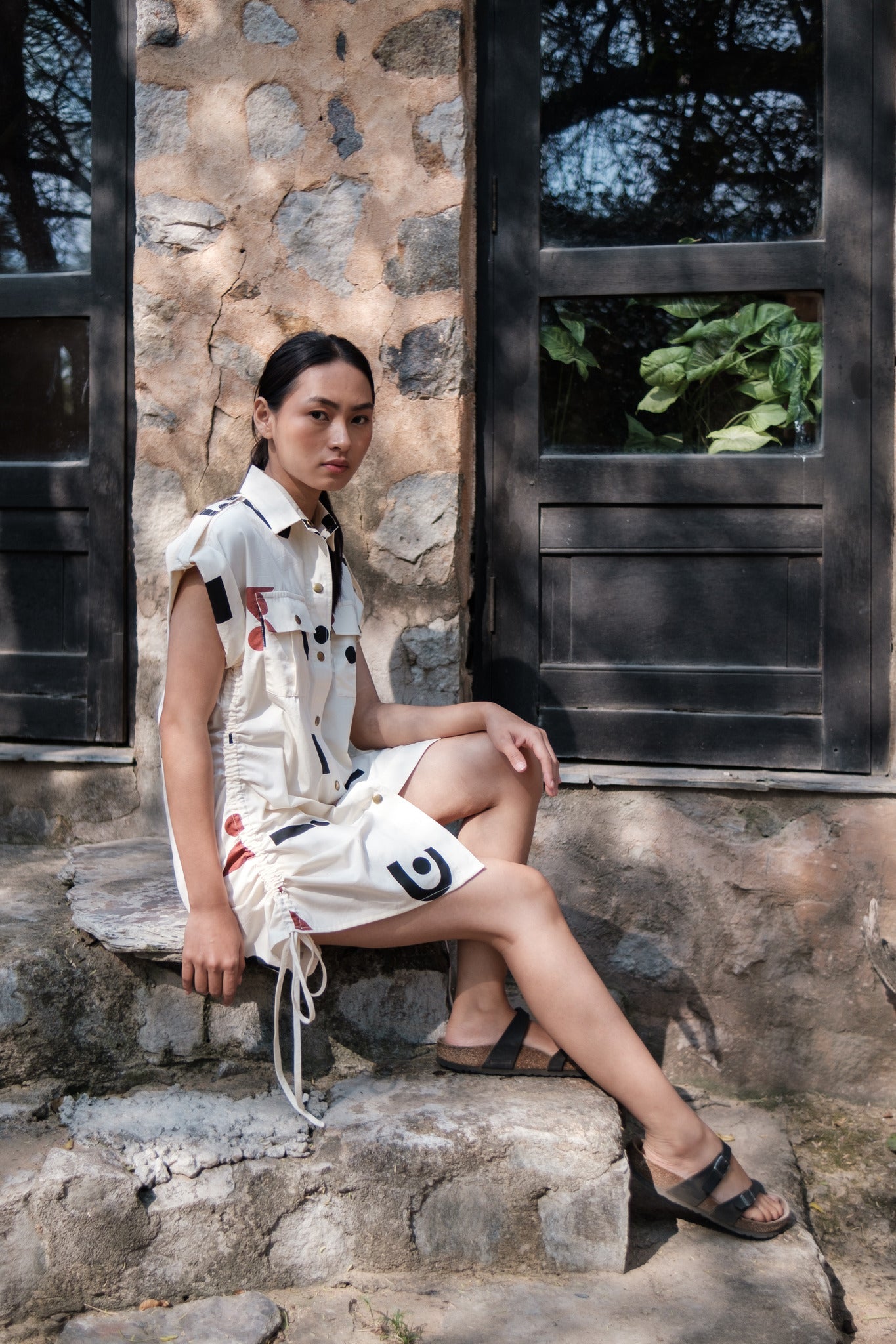 Sunrise Gather Dress - Triangle Print