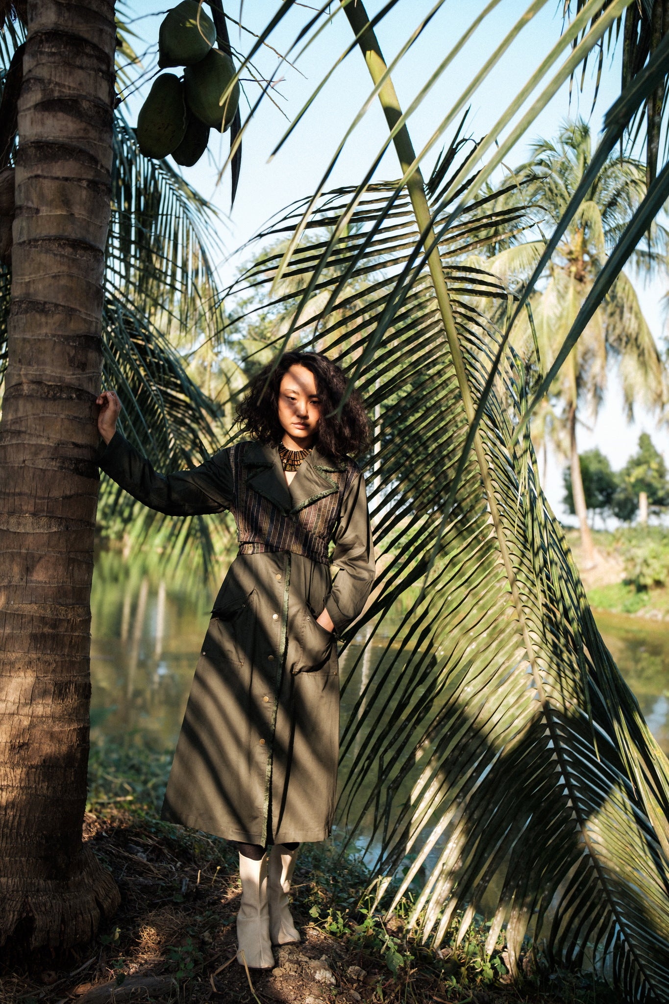 This incredibly versatile trench coat featuring a notch collar, our take on the classic trench with a timeless wrap detail designed from upcycled fabric, made using post production waste that transcends all seasons, making it a perfect wardrobe staple.It can be worn as a dress or as an overlay.