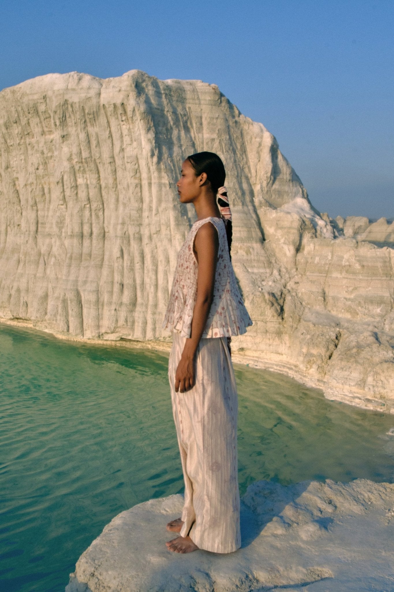 The Zeya Ruching Top seamlessly blends contemporary tailoring with thoughtful artisanal detail. Soft ruching contours the silhouette while hand-screen-printed floral motifs add visual depth and movement. This piece strikes an elegant balance between structured design and effortless comfort, offering a refined aesthetic that celebrates both precision craftsmanship and breathable ease.