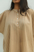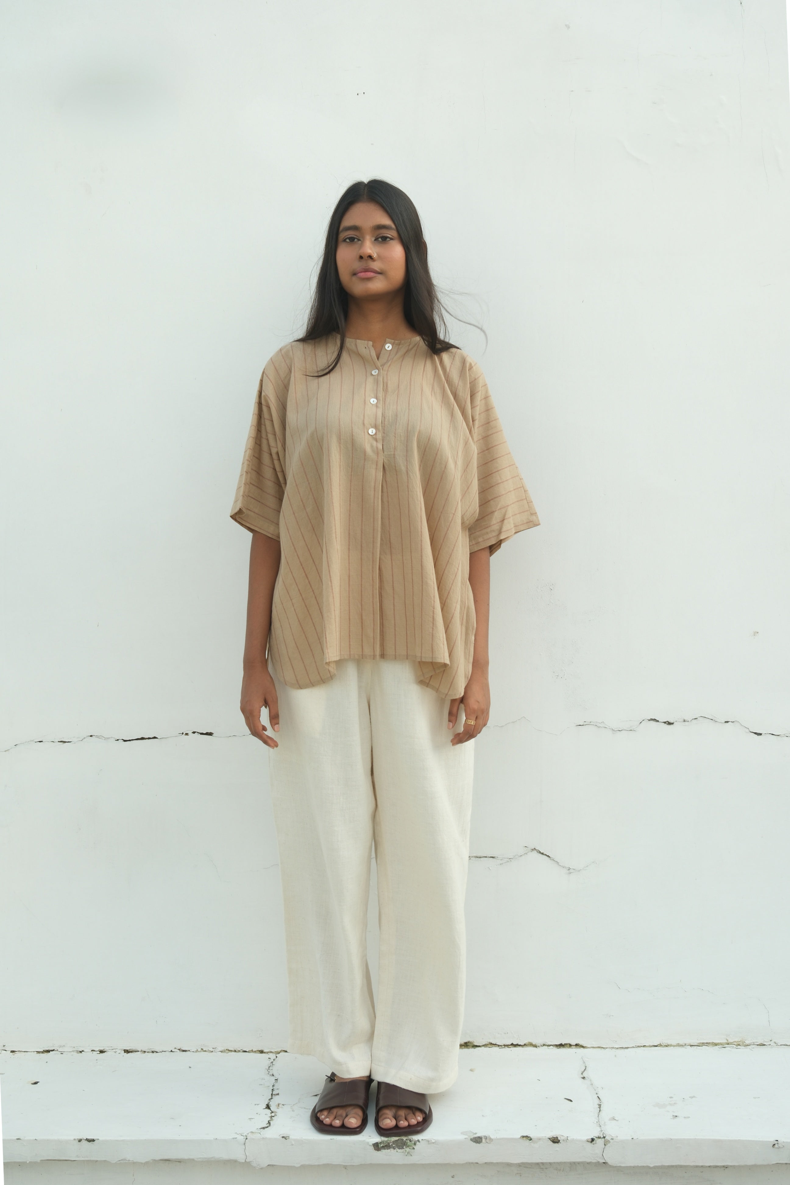 Sink into comfort with this generously cut kurta, designed for unhurried days at home and beyond. Deep beige cotton adorned with crimson stripes flows freely through kimono sleeves that invite movement without constraint. Naturally dyed for subtle depth and character, this piece marries relaxation with refined simplicity, a wardrobe essential that celebrates ease without compromise.