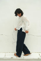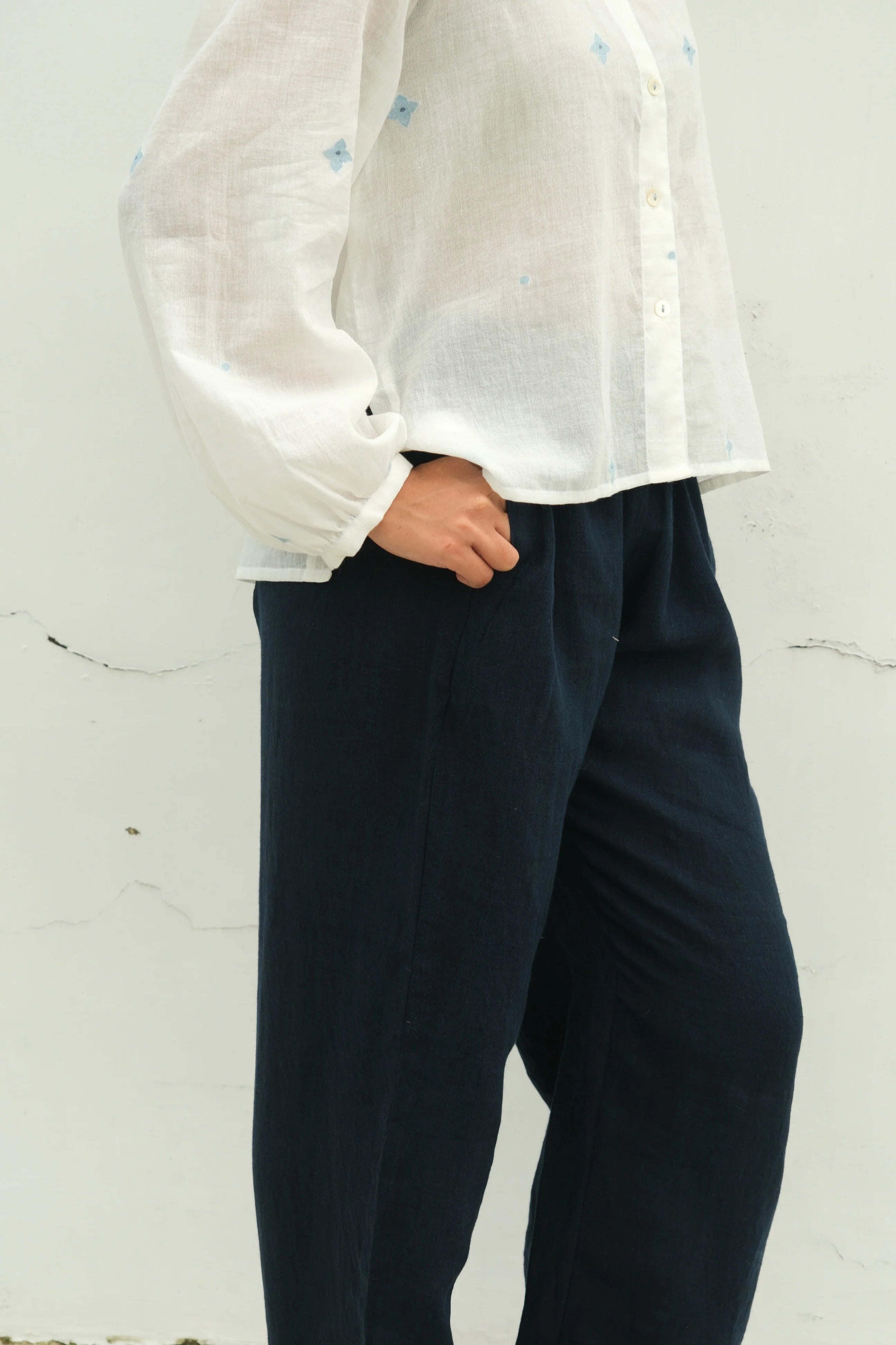 Cut in a relaxed silhouette that bridges straight and wide proportions, these full-length pants offer a contemporary fit suitable for any occasion. Crafted with yarn-dyed azo-free dyes, the rich coloring is achieved through responsible dyeing practices that minimize environmental impact. The fully elasticated waistband paired with an interior drawstring ensures a secure, adjustable fit, while functional side pockets provide practical everyday convenience.