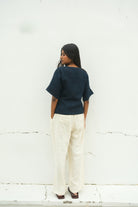 Discover understated luxury in this wrap top, where relaxed proportions meet refined tailoring. The V-neckline and elbow sleeves offer a flattering silhouette, while the signature tie-up front lets you customize your look with ease. Designed for those who appreciate quality and versatility, this piece effortlessly elevates any wardrobe, equally at home in professional settings or leisurely moments.