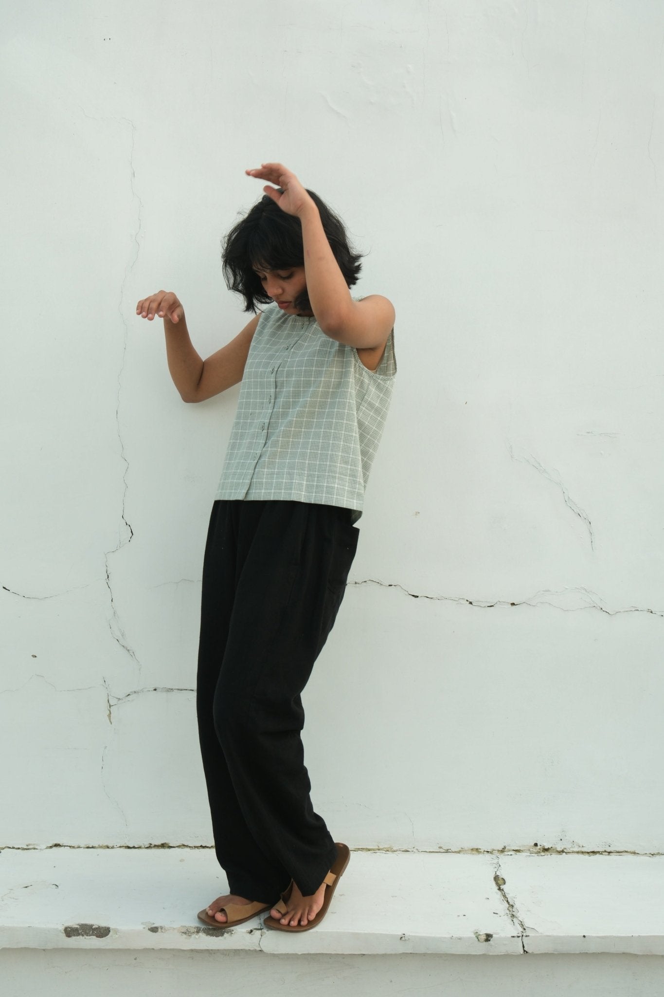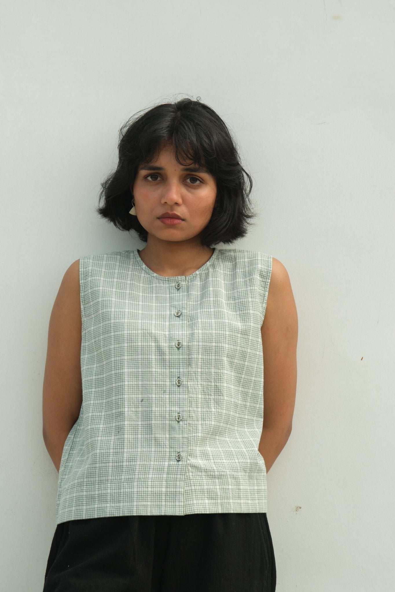 A refined layering essential, this checkered vest is crafted from mid-weight naturally dyed cotton that develops character with wear. Clean front button closure and a structured silhouette make it an ideal companion to your everyday wardrobe, equally at home over a crisp shirt or lightweight sweater. The textile's organic dye palette ensures each piece carries subtle variations, adding depth and authenticity to your styling options.
