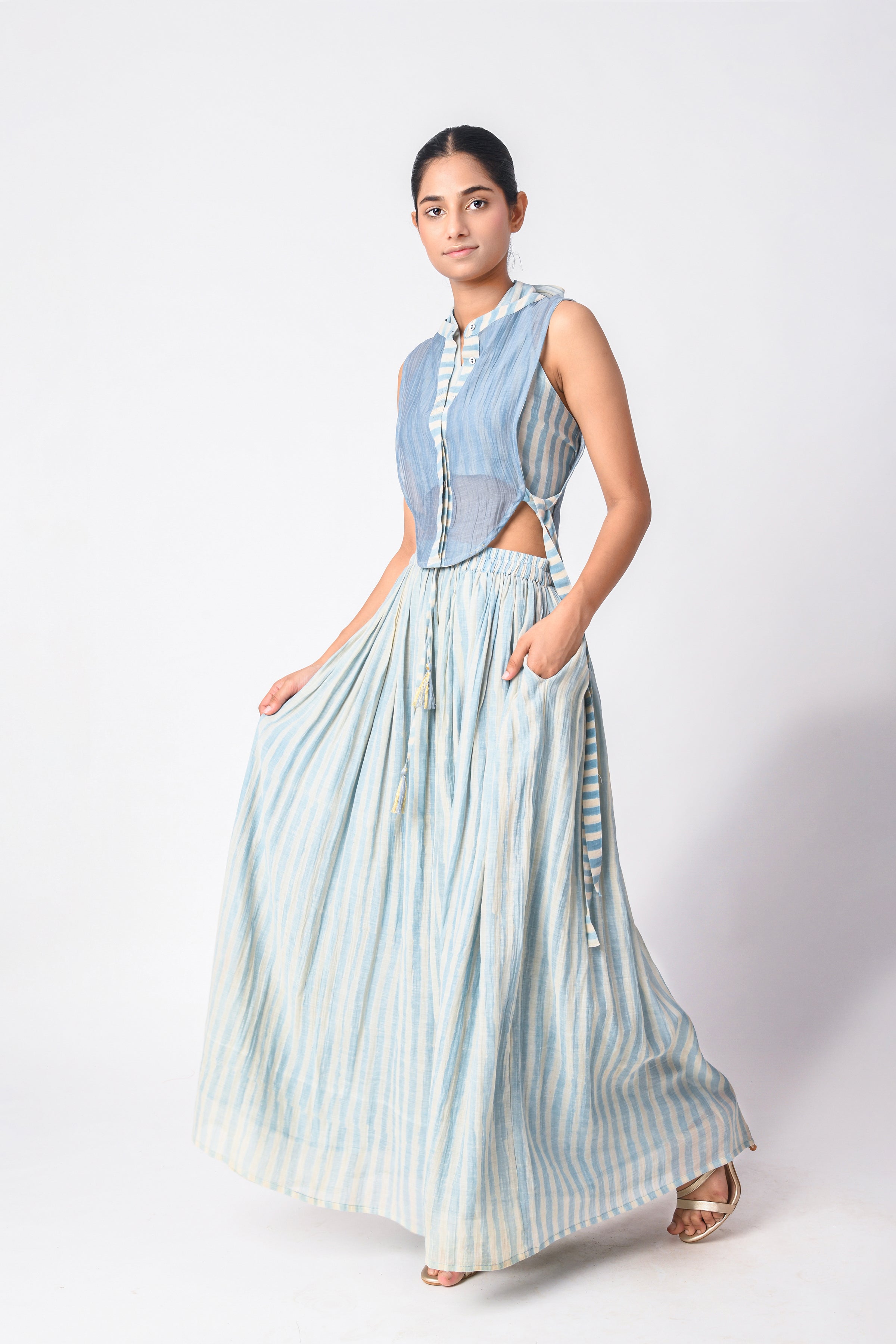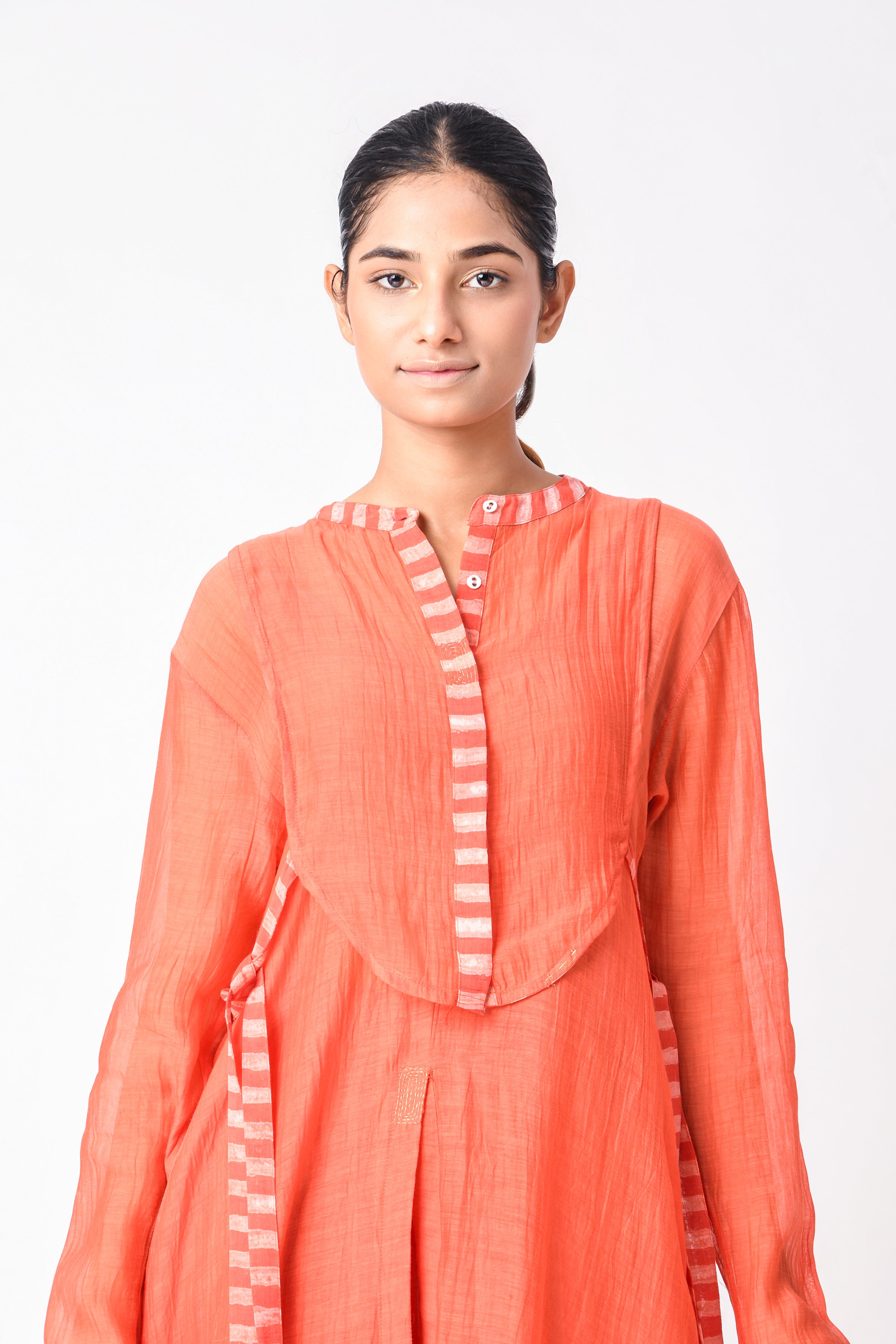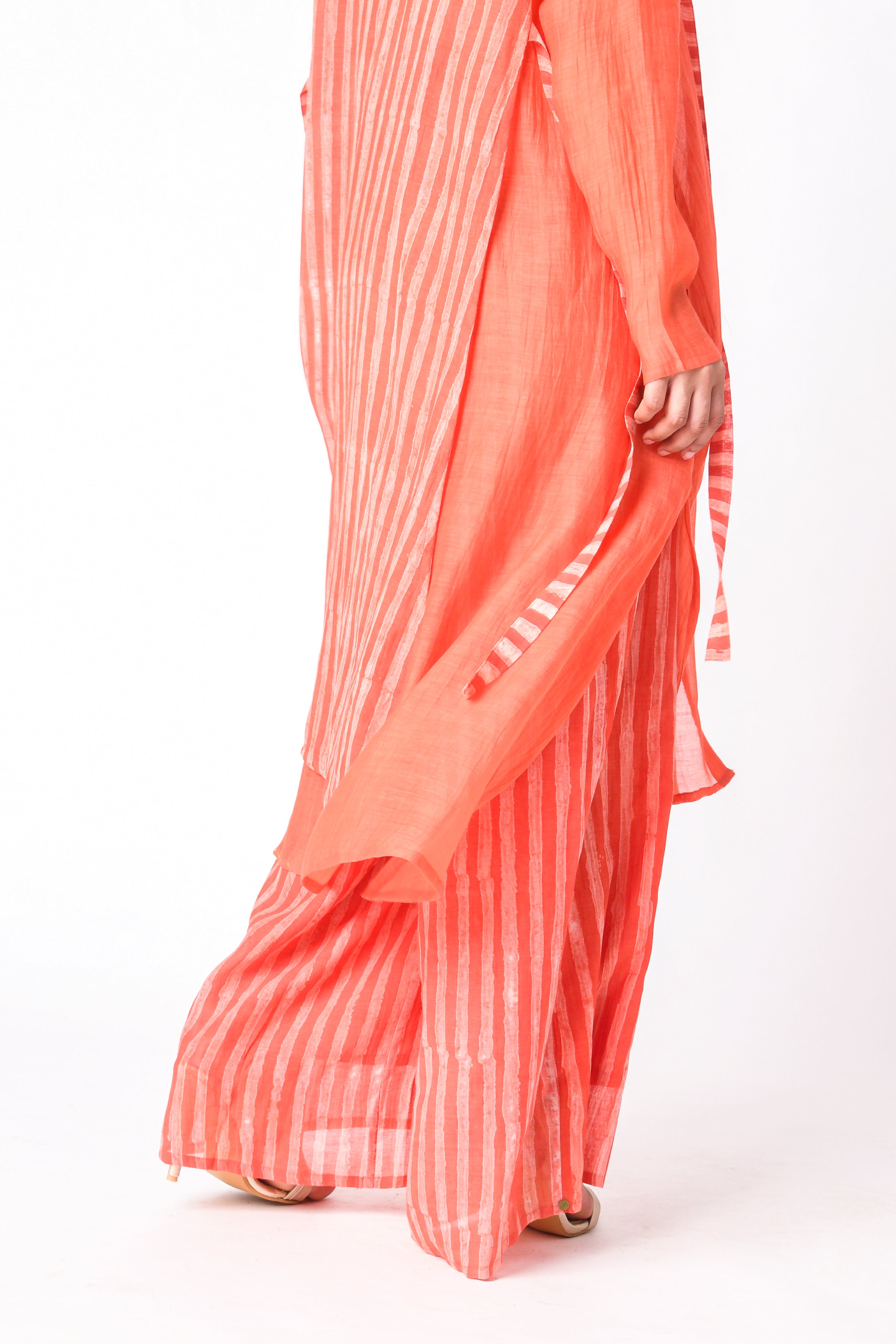 Breathable and elegant fabrics like various handwoven cotton weaves, Handspun Khadi delicate Jamdani cotton and Cotton silk, Linen, heritage Mashru Silk weaves, Bemberg Cotton Satin, flowy Bemberg Modal Silk and so on. The fabrics we curate are authentic in weave and quality.