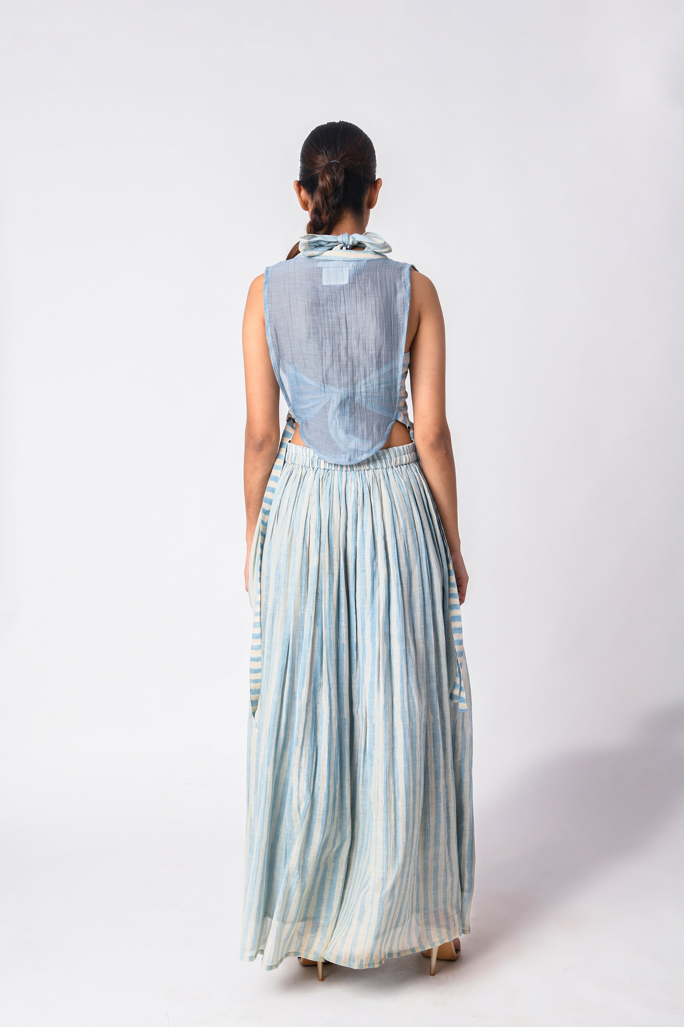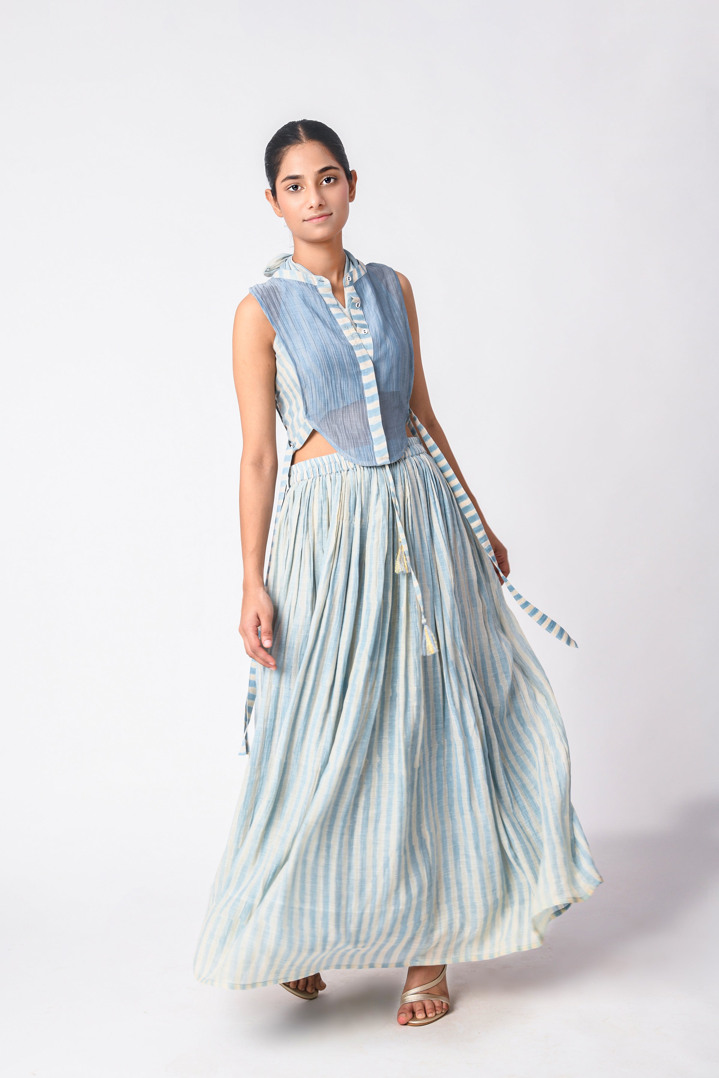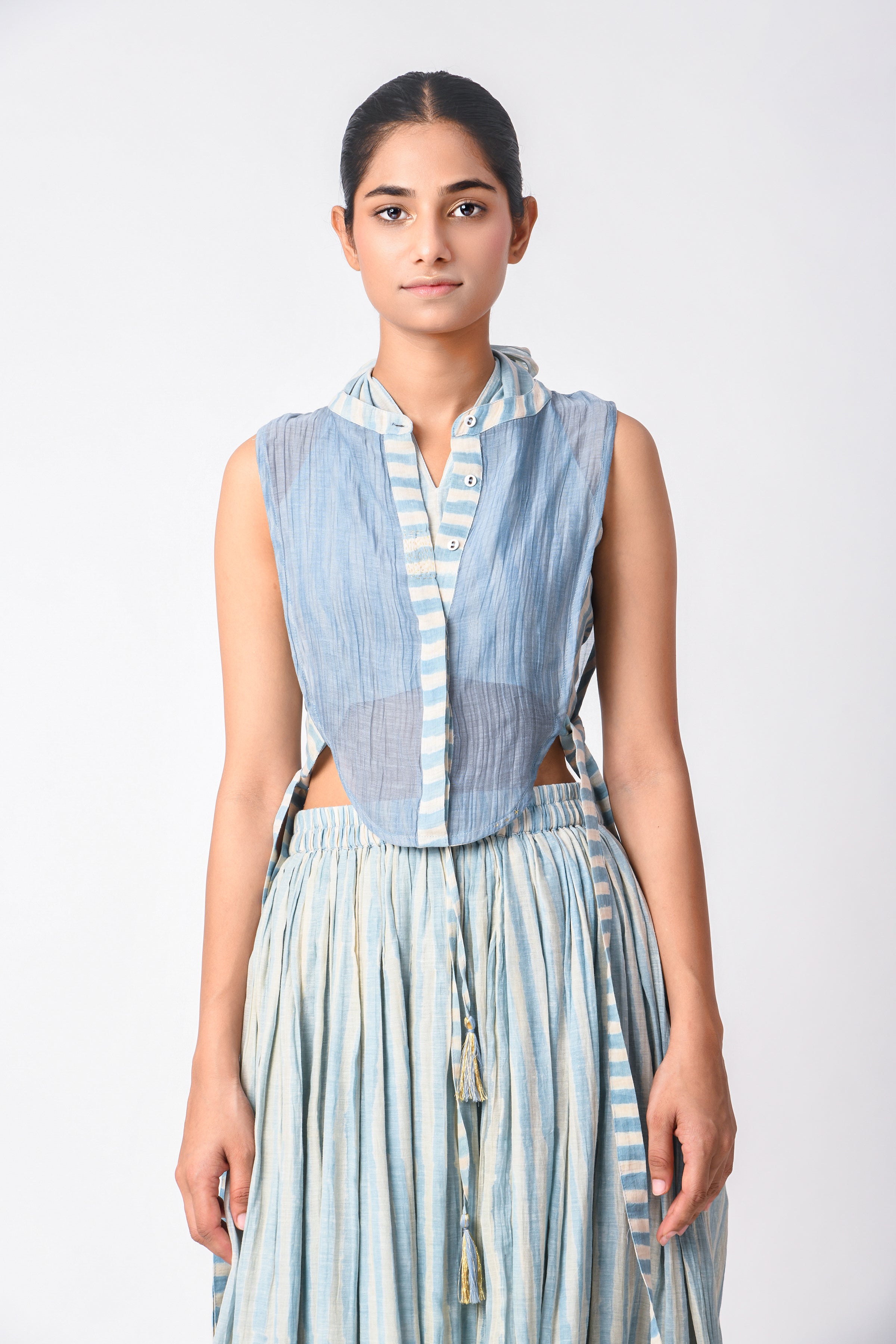 Breathable and elegant fabrics like various handwoven cotton weaves, Handspun Khadi delicate Jamdani cotton and Cotton silk, Linen, heritage Mashru Silk weaves, Bemberg Cotton Satin, flowy Bemberg Modal Silk and so on. The fabrics we curate are authentic in weave and quality.