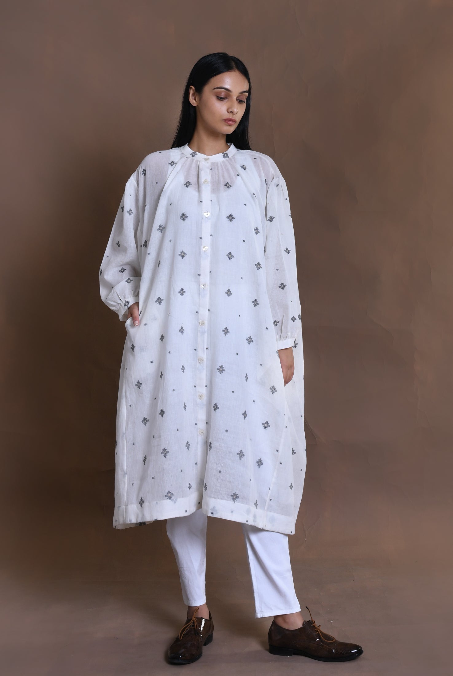 Our dresses are thoughtfully crafted in luxurious and breathable fabrics such as Jamdani Cotton, Mulberry Silk, Handwoven Linen, Organic Cotton, Mashru Silk, Chanderi Silk-Cotton, and even sustainable blends like Hemp-Cotton. Each dress tells a story with intricate details, block prints, digital prints, kantha embroidery, and contemporary cuts.