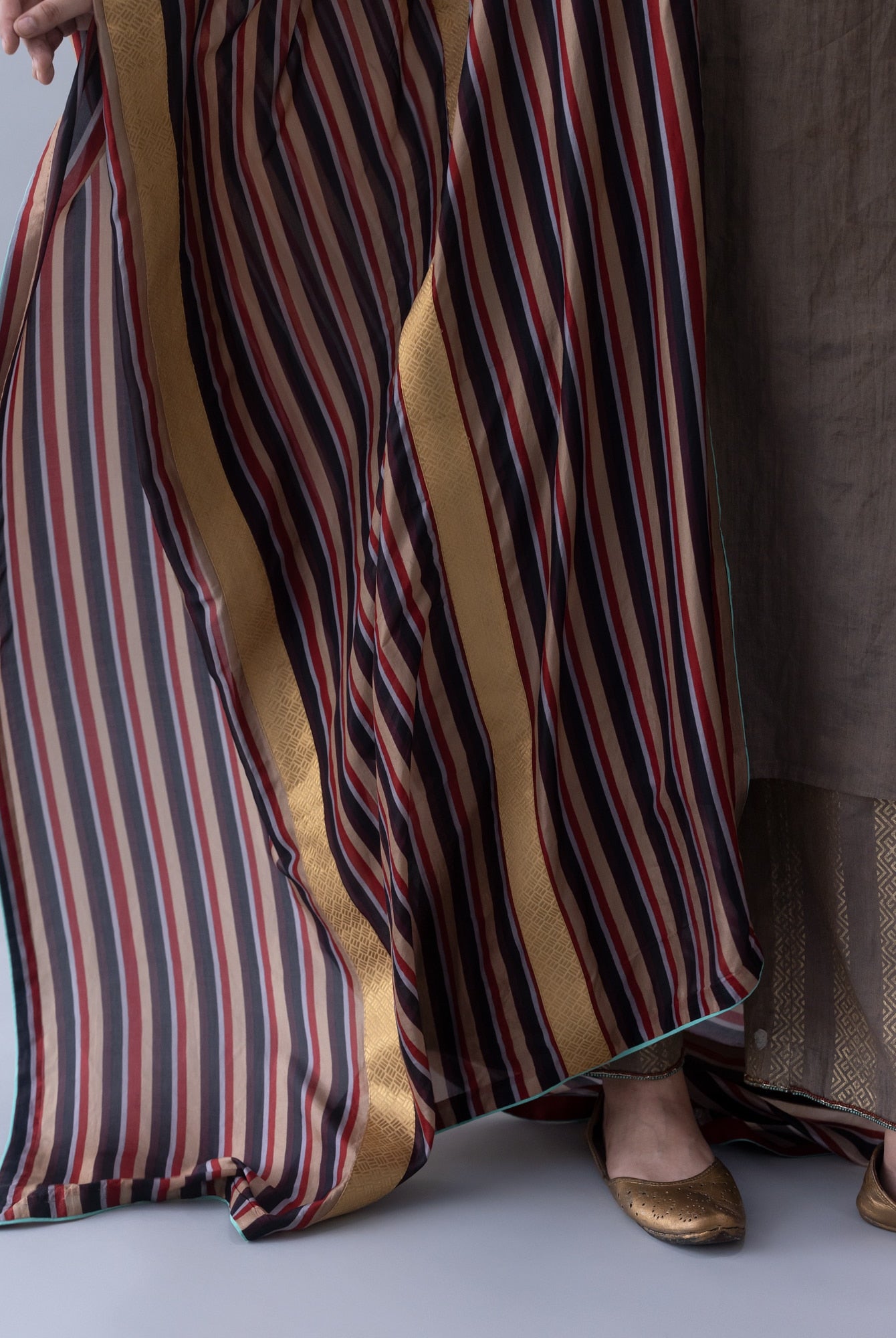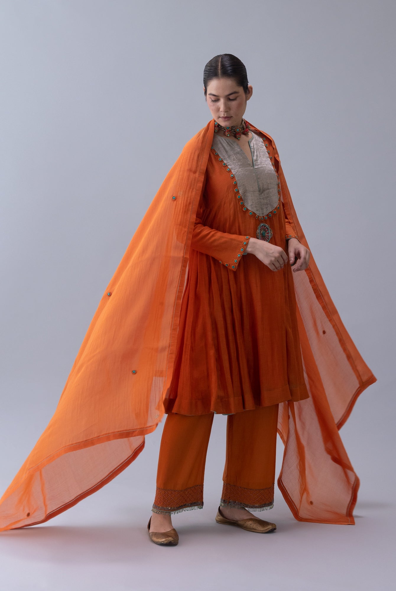 Ciceroni's Crafted Collection: Where Tradition Meets Trend: Our odhanis/dupattas are not just accessories; they're hand-embroidered masterpieces. Traditional techniques like nakshi peeta, tikki aari work, dabka, zari, and metal beadwork dance on luxurious fabrics – Organza Silk, Chanderi Silk, Silk Velvet, and Silk Tissue. Picture motifs like cypress trees, Chinar trees, Chaand buttas, aari scallops, and florals intricately interpreted in rich, vintage-inspired hues.