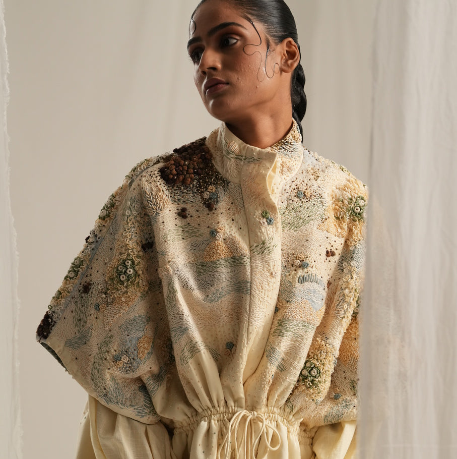 Pick jackets for your capsule wardrobe based on the season but also consider its trans-seasonality so you can get more wears out of your jackets. A must-have for your wardrobe is a bold, printed one that will contrast with any outfit so that it becomes representative of you, wherever you go. Our jackets exude everyday luxury in materials like Handwoven Cotton, Cotton-Silk, Khadi, Hemp-Cotton, Tencel, patchwork denim, Corduroy and so on. Upgrade your festive and work wear wardrove with luxe jackets made from Butter Crepe, Velvet, Chanderi, Tencel Twill, Silks made from Bamboo and wood pulp, Satin Slub, Crepe, Viscose Satin Slub and so on.
