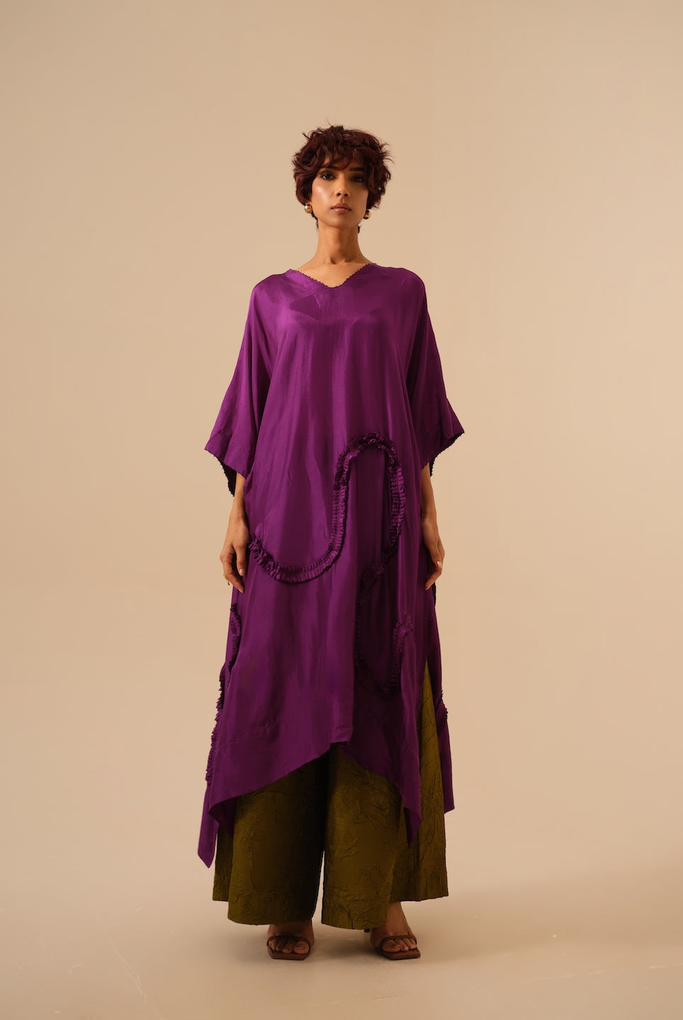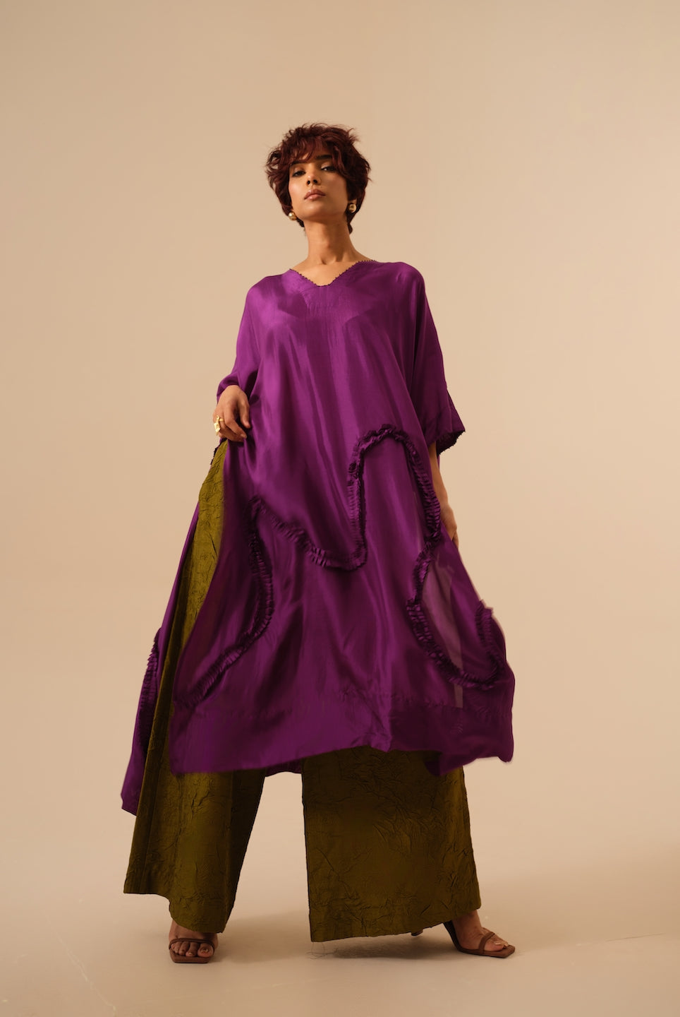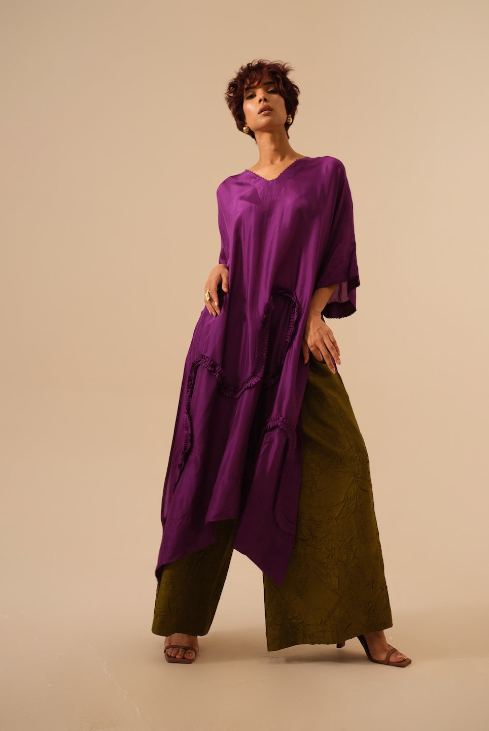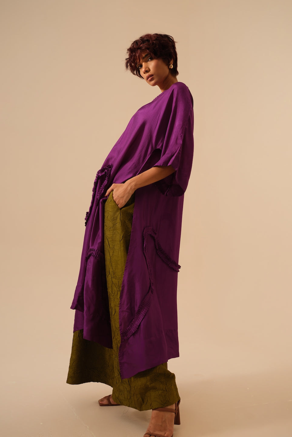 Effortlessly elegant and luxurious, our Oregano Pants feature a comfortable, relaxed straight cut crafted from plush Mysore silk. The elasticated waistband and functional side pockets add both convenience and functionality, making these trousers a versatile addition to any wardrobe. Elevate your style game with these exquisite purple pants.