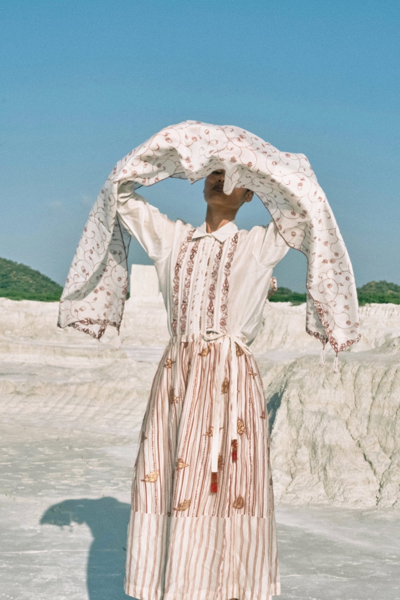 The Ithaa Chanderi Scarf showcases timeless elegance through meticulous artisanal execution. Woven from hand-screen-printed cotton silk, this refined piece features embroidered detailing that traces the entire border with precision. Handmade beaded tassels complete the edges, introducing subtle luminosity and tactile dimension. An understated yet distinctive accessory that reflects the heritage of traditional weaving craftsmanship.