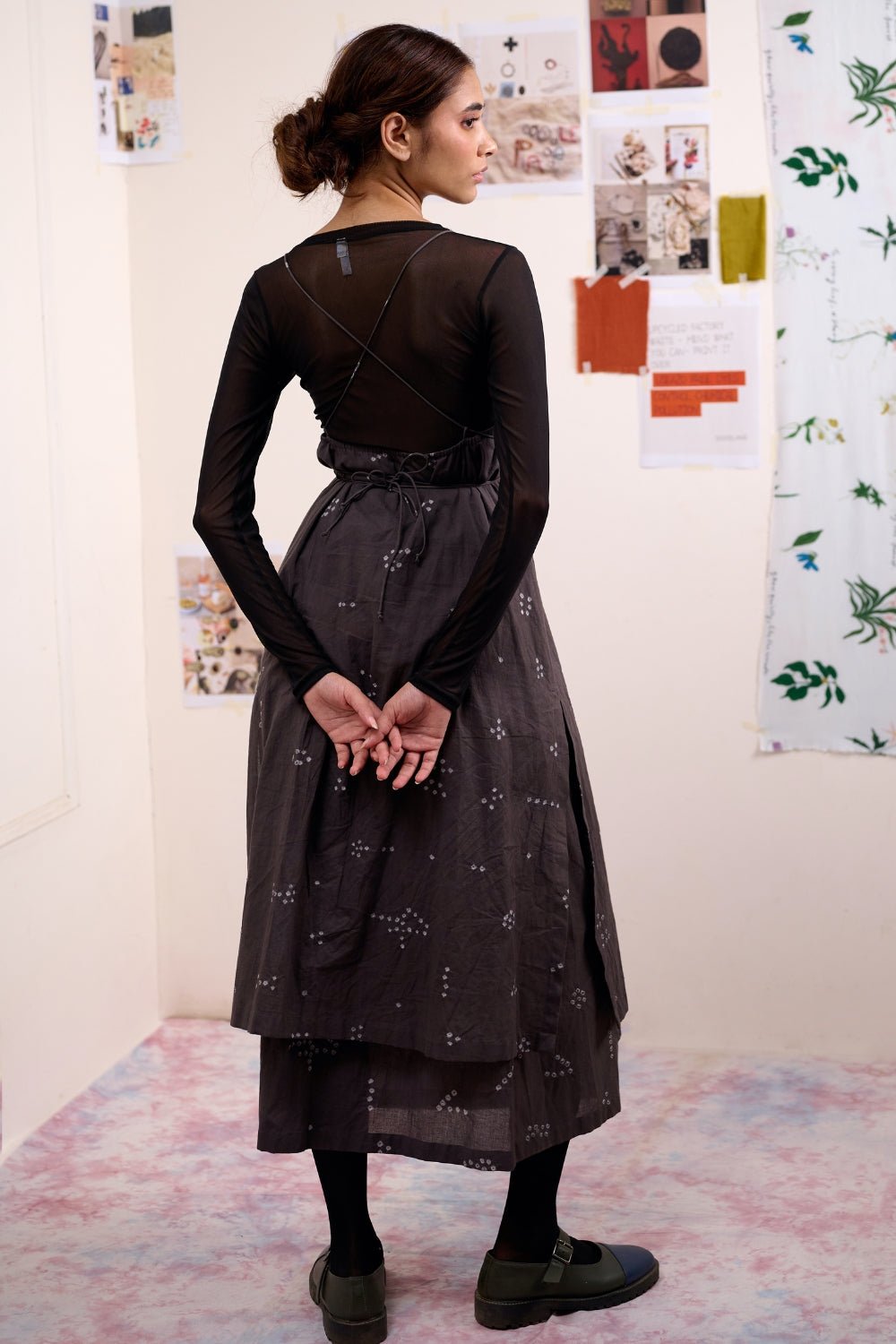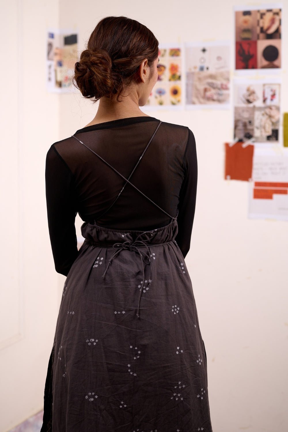 Elevate your festive wardrobe with the Nina Bandhani Tunic, a sophisticated statement piece crafted from organic cotton. Delicate shoulder straps and intricate cross-string back detailing create an elegant silhouette, while the adjustable drawstring waist ensures a personalized fit. The graceful side slit enhances movement and fluidity, perfect for celebrations that demand effortless grace.