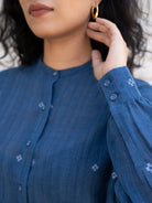 Our signature oversized shirt with drop shoulders and a slim collar. Dyed using traditional indigo-dyeing technique, there may be colour variation in the textile which only adds to its character.