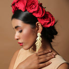 Elevate your accessory game with these Vintage Made Modern handcrafted earrings, beautifully designed in an intricate leaf pattern. Crafted from premium brass and adorned with a lustrous layer of 22K gold plating, these earrings offer the perfect blend of timeless charm and contemporary elegance. Featuring a secure push-back clasp for comfortable wear, they are the ideal statement piece to complement both everyday and occasion outfits.