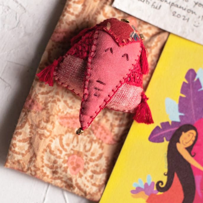 Material: Gajah Red, The Companion Brooch is created using waste fabric collected from local tailors and boutique along with handmade thread buttons.