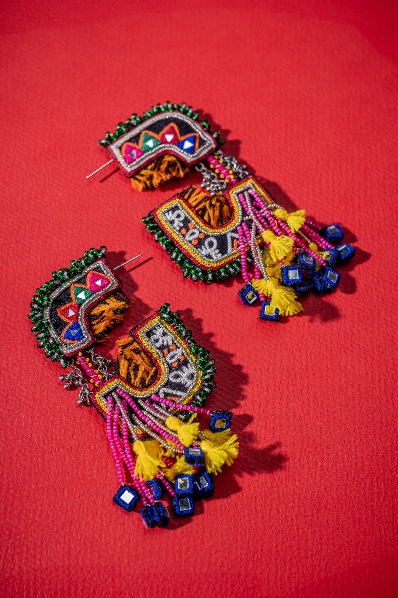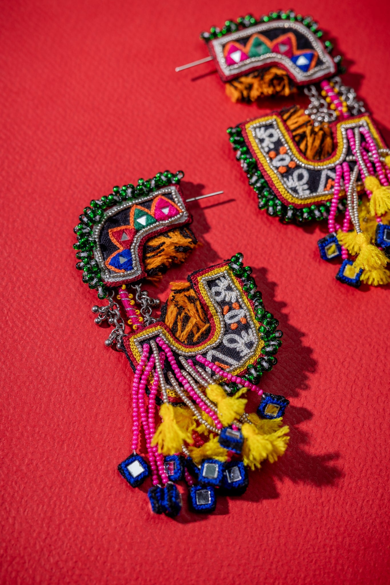 These Boho hoop earrings are a stunning blend of craftsmanship and traditional artistry, with intricate, vibrant embroidery inspired by tribal and ethnic designs. Varying sizes and colors of beads add texture and depth, while tiny mirrors add shine and a whimsical touch. The perfect fusion of vintage and modern, these earrings make a bold fashion statement while honoring cultural heritage. Wear them with boho chic or elegant outfits for an elevated look.