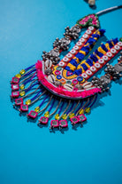 This neckpiece is a masterful combination of elegance and creativity, adorned with intricate traditional motifs and delicate embroidery. The addition of mirrors and tassels adds a touch of sparkle and playfulness, perfect for any occasion or everyday wear. Lightweight and secure with a simple hook closure, this accessory is a must-have for those who appreciate unique and luxurious design.