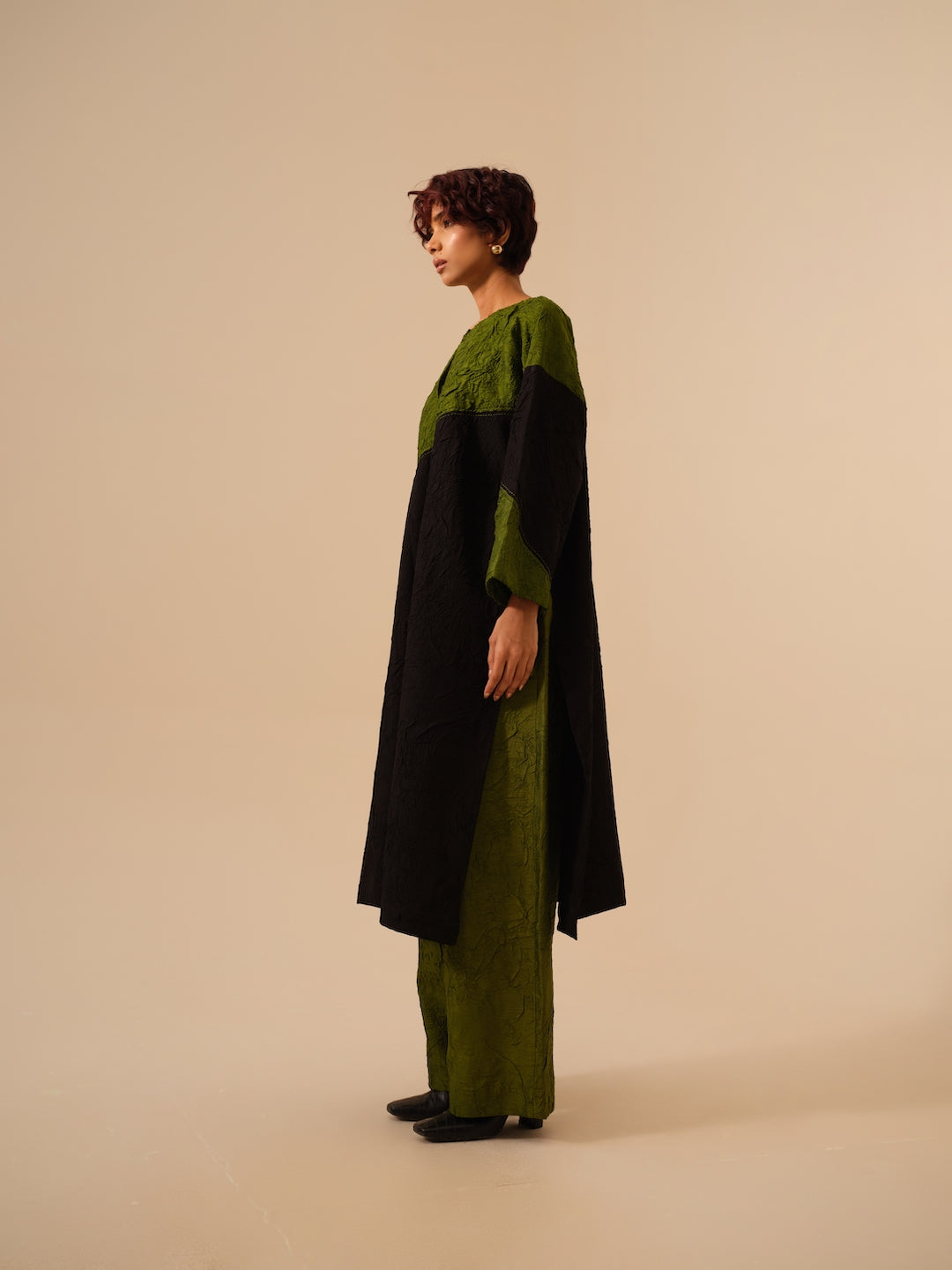 Crafted in hand-crushed silk, processed in-house by our artisans, these trousers offer a relaxed silhouette with effortless drape. Designed for comfort and ease, they feature an elasticated back for a flexible fit while maintaining a polished finish. A versatile essential that pairs seamlessly with structured or fluid separates alike.