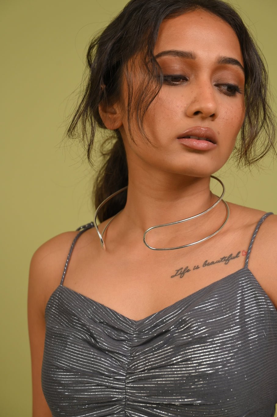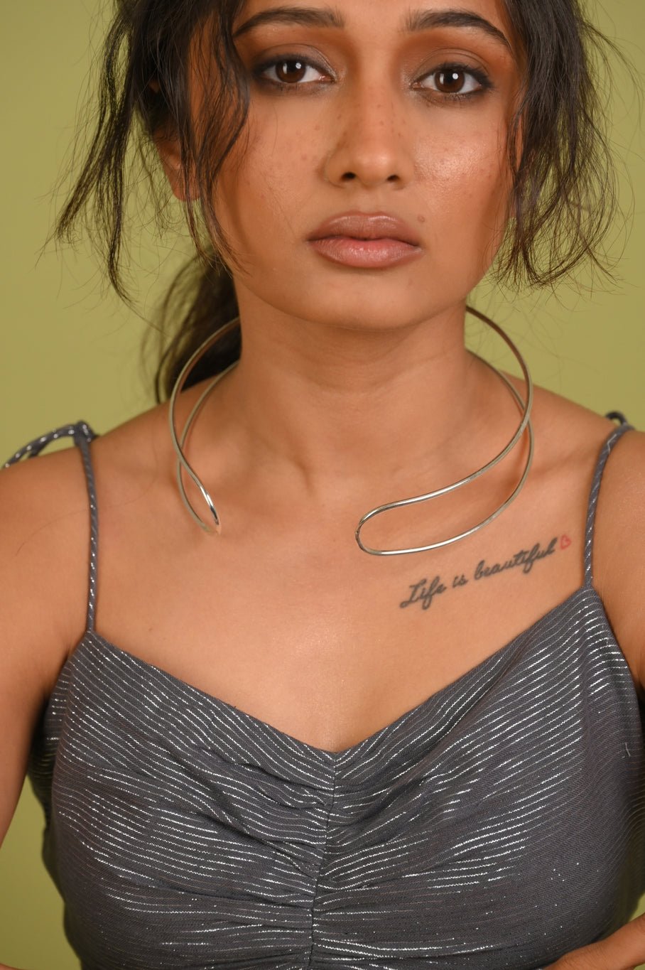 At just over an ounce, this light brass choker puts the statement in statement jewellery. The oversized Torc neckpiece is dipped in luxe gold/silver for a subtle, understated vibe that lets the bold shape do all the talking. Perfect for wearing solo or layered with other chains, turn heads while keeping things light and comfortable.